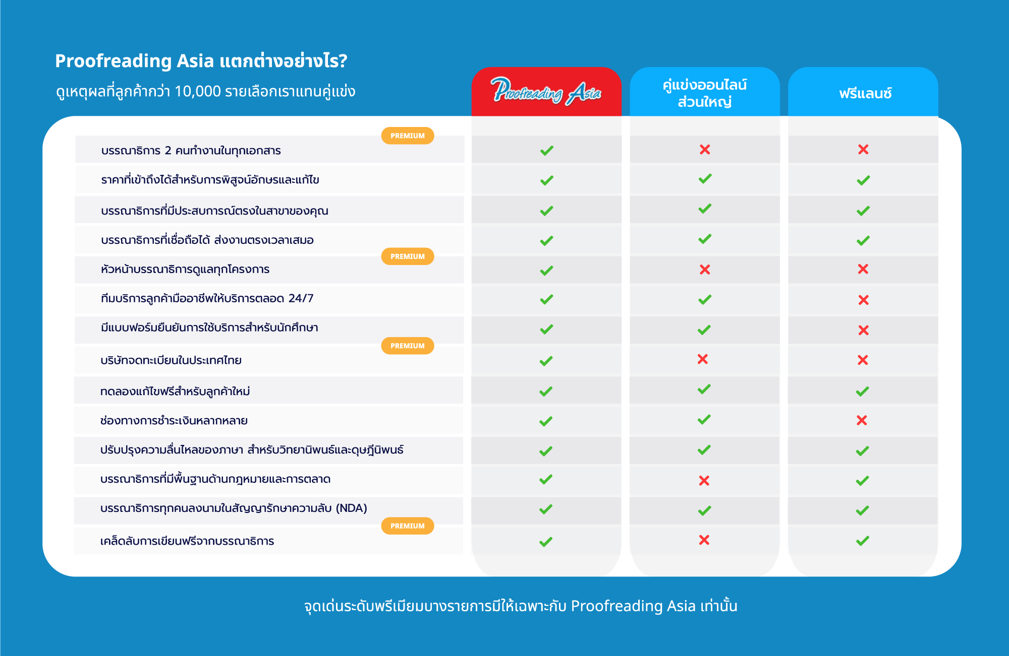 Proofreading Asia เชี่ยวชาญในการพิสูจน์อักษรและแก้ไขเนื้อหาบนเว็บไซต์เพื่อทั้งความพึงพอใจของผู้อ่านและ SEO การสร้างความสมดุลที่เหมาะสมระหว่างการสร้างความพึงพอใจให้ผู้อ่านและ SEO นั้นค่อนข้างยาก แต่อย่างไรก็ตามเรามีบริการระดับมืออาชีพในการสร้างเนื้อหาออนไลน์ให้ผู้ใช้อ่านรักในขณะเดียวกันก็เป็นไปตามแนวทางปฏิบัติของกูเกิ้ล SEO